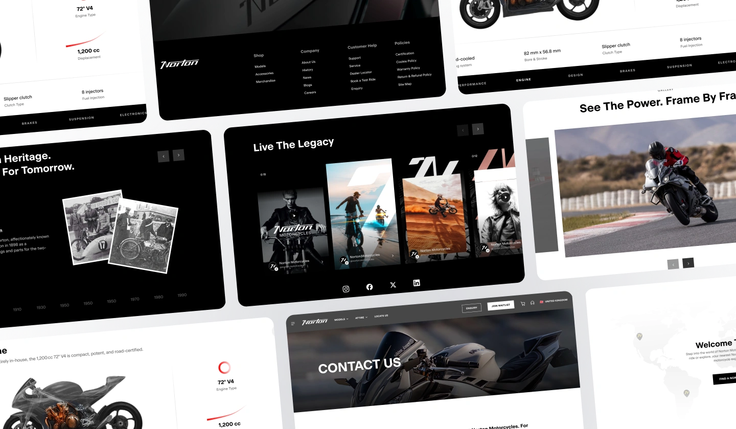 The goal was to create a platform that drives motorcycle sales while restoring Norton’s premium positioning. This required carrying forward its heritage while reshaping the experience for the modern rider.